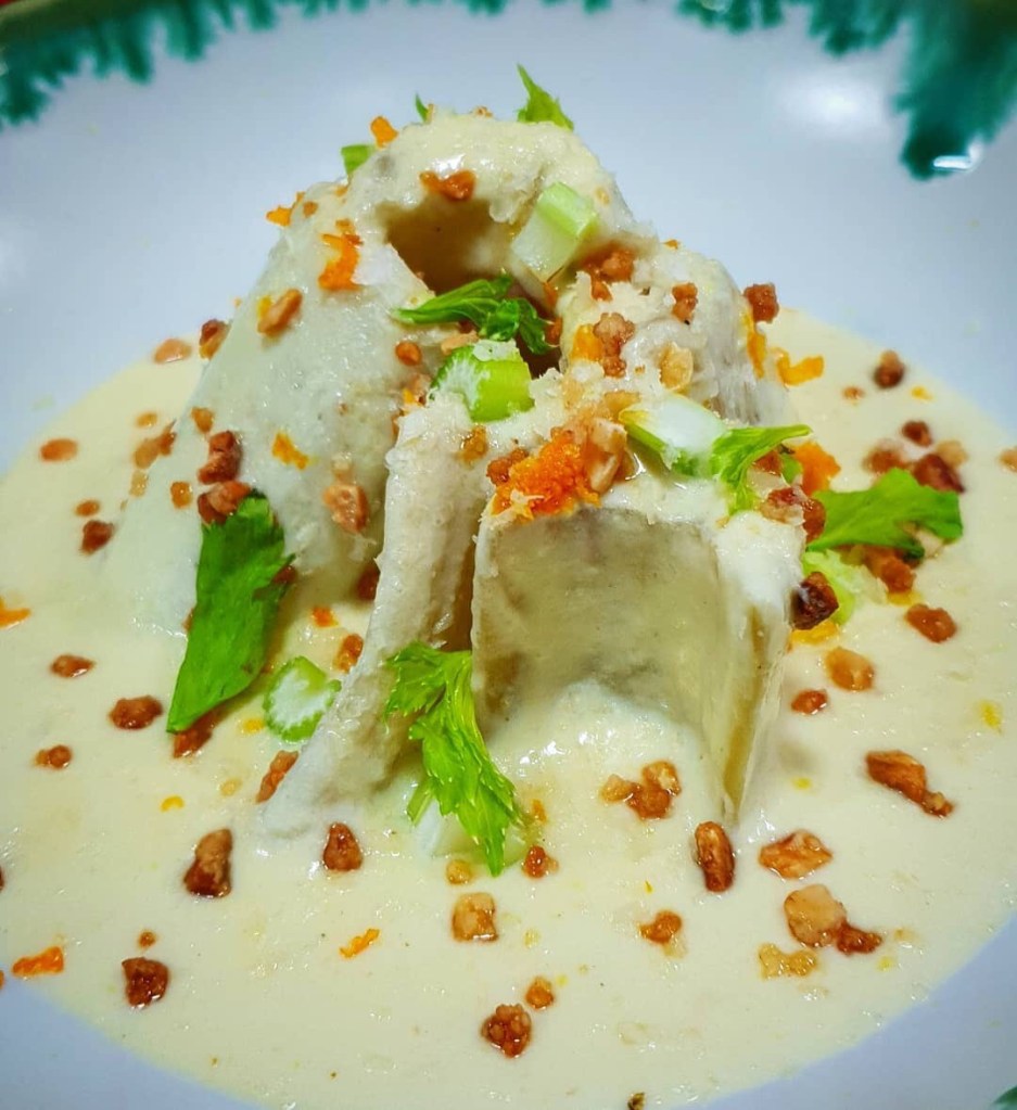No deja de ser algo tan sencillo como Yuca cortada intencionadamente emulando la forma de un trozo de carbón, cocida en agua con tinta de calamar, para después ser frita y darle así ese “tostado” de la madera que aún no se ha quemado del todo, Divertido verdad? pues vamos a ello!