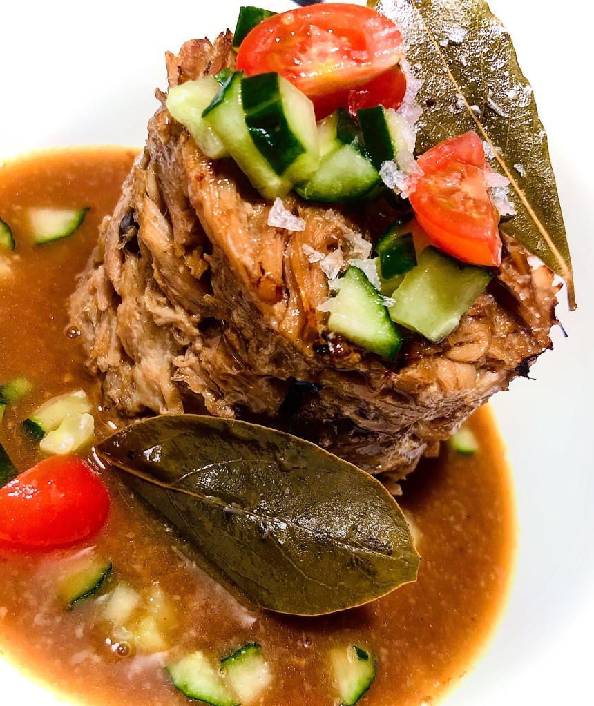 Una vez listo, desmoldamos y lo introducimos al horno a 200 grados 15 min, se creará una capa tostada en el exterior pero se mantendrá jugoso por dentro.